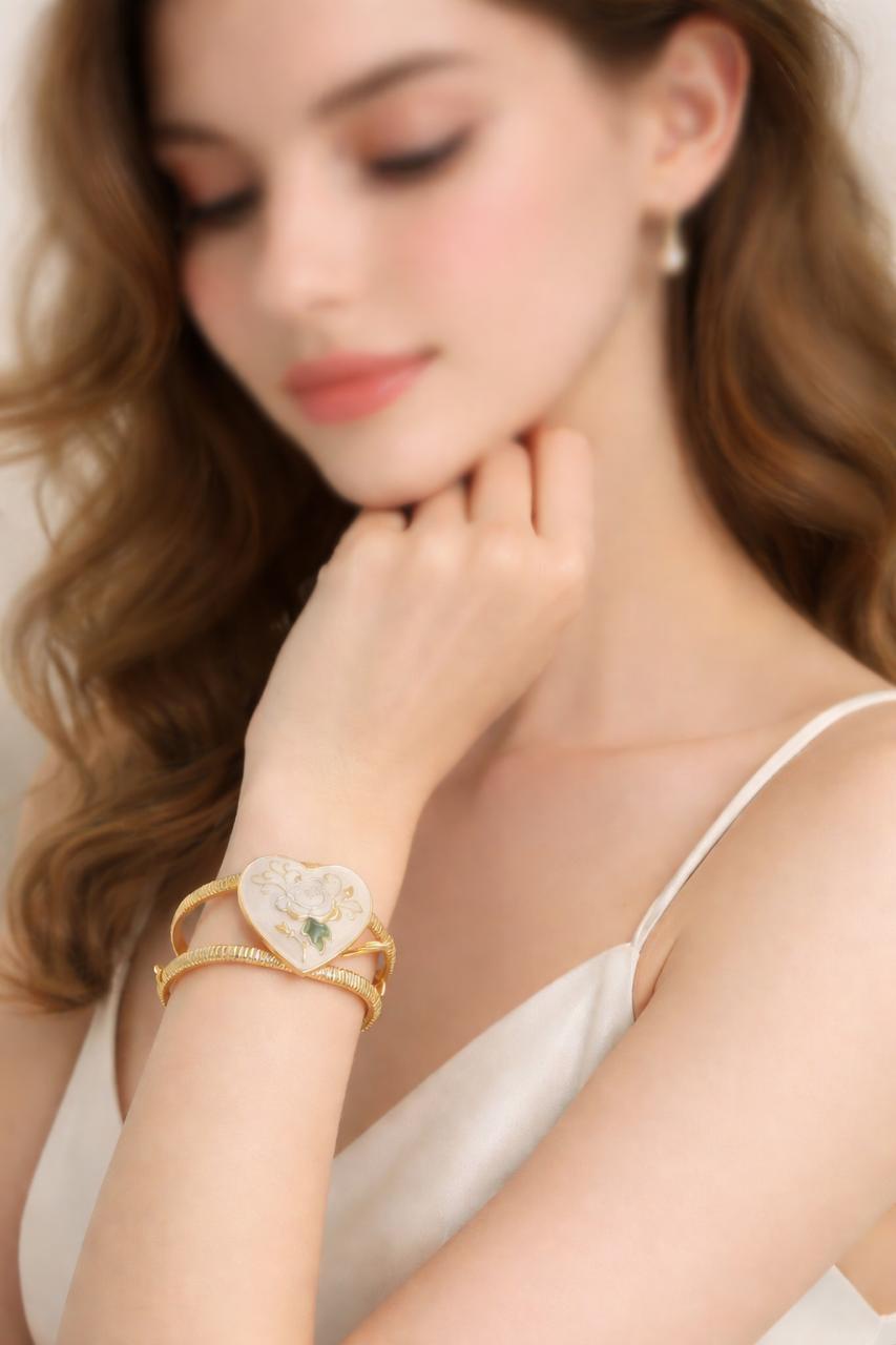 Capture the essence of classic romance with this charming heart-shaped cuff bracelet. Featuring delicate floral motifs and artisanal textures, it’s a timeless accessory for those who love "Cottagecore" elegance or Victorian-inspired jewelry