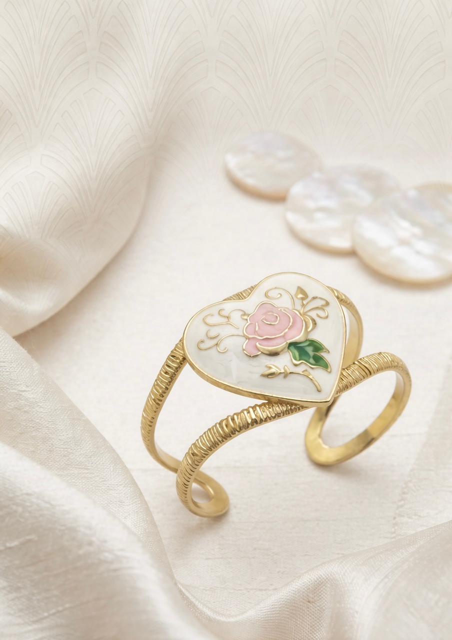 Vintage Rose & Heart Enamel Cuff